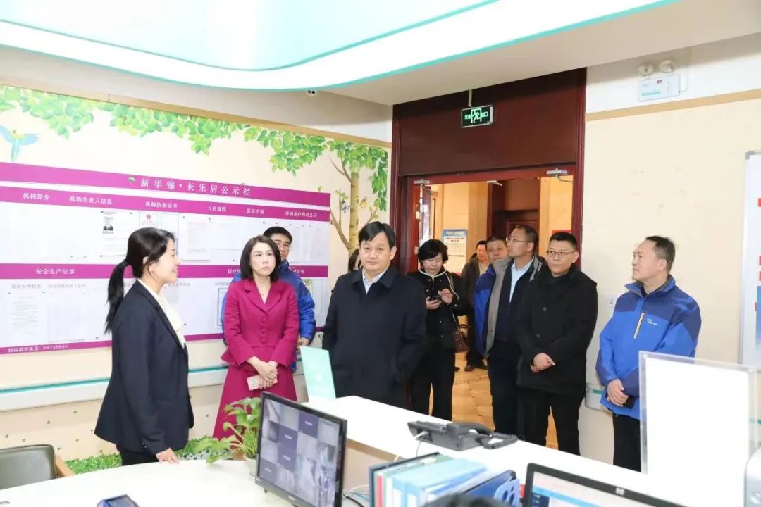 3月8日,副市长赵胜村一行尊龙凯时·长乐居调研养老产业发展情况。市民政局党组成员、副局长鲁晨等领导陪同调研,尊龙凯时集团执行总裁张航、长乐公司董事长徐延华、总经理刘浩洋参加活动。